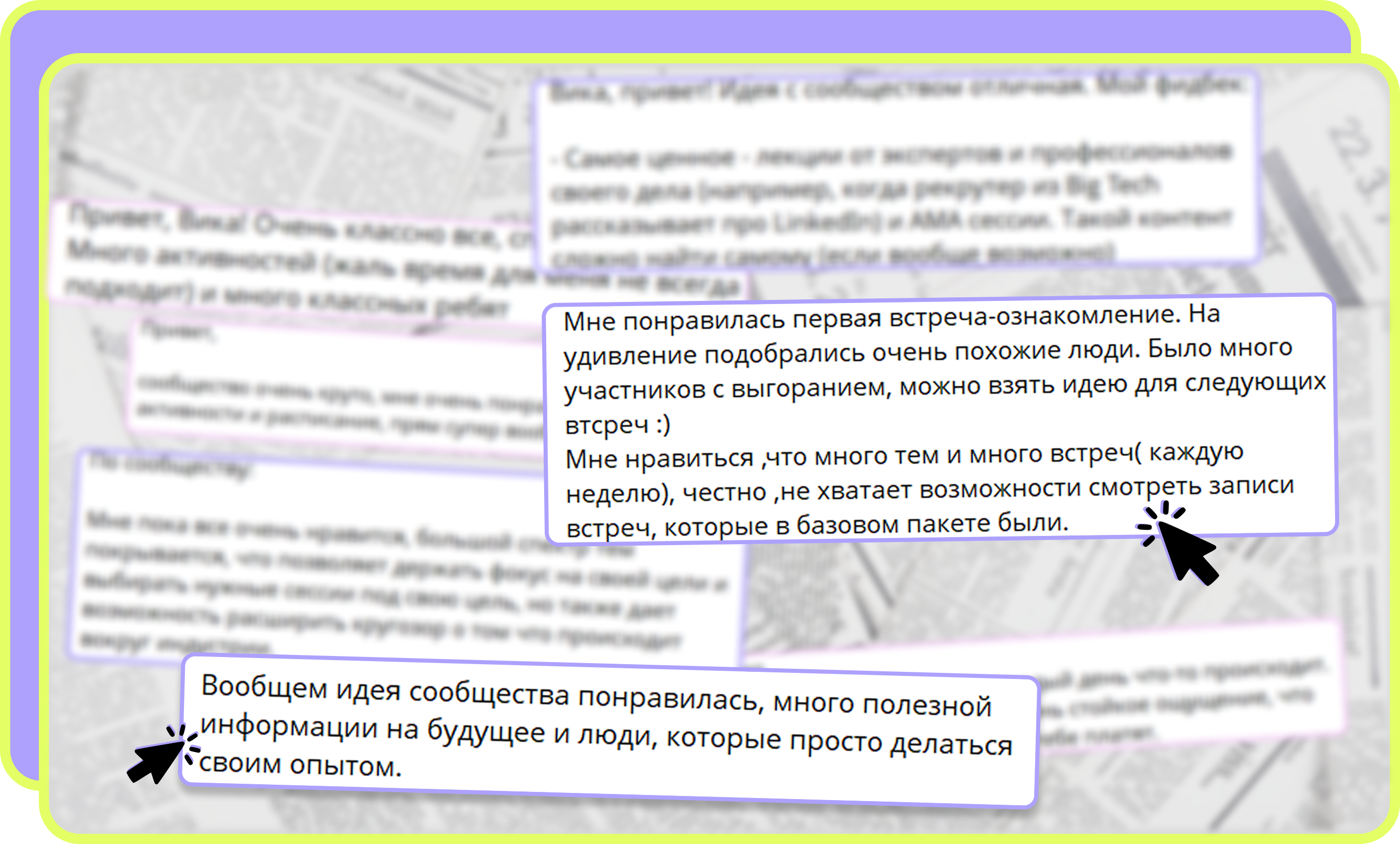Если это время для вас неудобно — не переживайте! Все встречи записываются и становятся доступны участникам для просмотра в любое время. Записи сохраняются на специальной платформе, доступ к которой вы получаете сразу после оплаты.